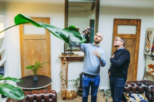 Het bezoek van Van der Kam begint met een kopje koffie, achterin de ruimte. Hij stelt wat vragen, over het pand en het energieverbruik. “We zijn hier drie jaar geleden gekomen, en hebben het pand toen opgeknapt”, vertelt Femke. “Het dak was al geïsoleerd, maar we hebben tochtstrips, een brievenbusborstel en op meerdere plekken dubbel glas geplaatst.”